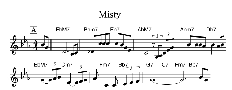 さて、この曲ですが、ジャズミュージシャンにはよく知られる Misty にコード進行がとても似ています。